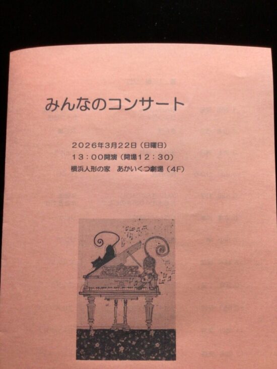 さてそれはさておき、もう3/22(うちの生徒の発表会・・・みんなのコンサート)は、もう3日後です。場所は、横浜人形の家4f階、あかいくつ劇場にて、開催します。1か月前の、リハーサル会を終え、もうあとは体整えて、ぜひ無事に全員、当日迎えたいです。皆さんもよろしければ、いらしてください。ただし演奏中は静かに・・・よろしくです🎹💕‼️